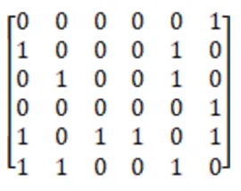 Although the graph looks complicated, creating an adjacency matrix is a simple process. Since there are 6 vertices, the adjacency matrix will have 6 rows and 6 columns. Each entry is initially filled with zeros.