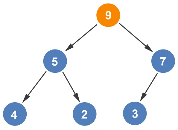 The root node of a max-heap contains the largest value. Each child is smaller than the parent. We’ll start with the same array that we had in the previous few articles.